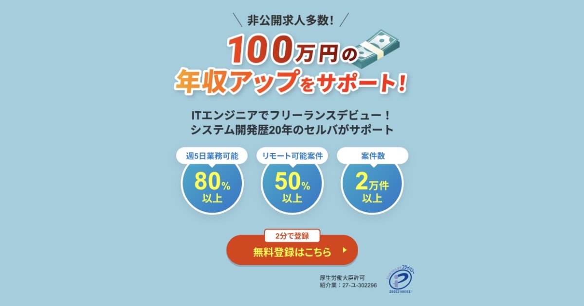 テックリーチ【フリーランスエンジニア向け転職サイト】 (PR)